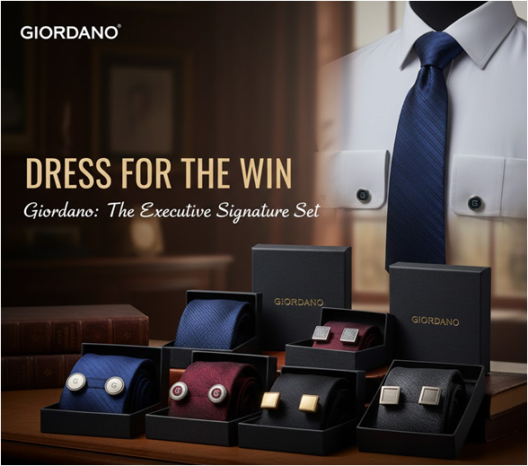 Gift the finishing touch of prestige with the Giordano Tie & Cufflink Set. This is the ultimate corporate accessory for executives who command attention and respect.