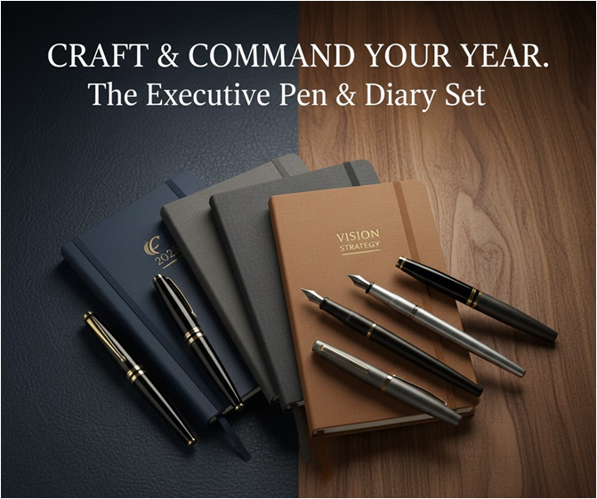 A gift that gets used every single day. The Pen writes the strategy, the Diary holds the vision, and the Mug fuels the drive. -