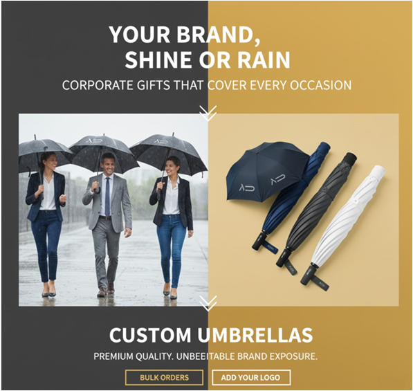 Turn every sidewalk into a promotional opportunity. Custom umbrellas: Gifting with Maximum Reach.